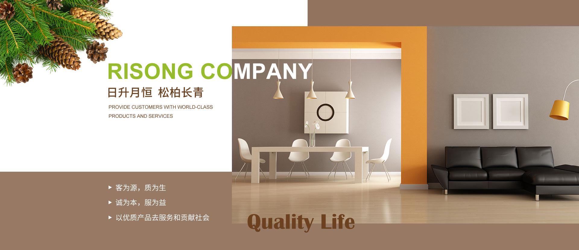 大連日松將一直秉承“以優(yōu)質產品去服務和貢獻社會”的經營宗旨;“客為源,質為生、誠為本、服為益”的經營理念;達到“使用者、銷售者、制造者”三者并存共榮之經營思路;全體日松人將以“熱情、禮貌、快捷、準確”的行動指南,不懈努力的為每一位客戶,提供行業內一流的高端、環(huán)保、舒適、健康的產品和細節(jié)服務,打造出適合“您”的優(yōu)質家居住宅環(huán)境。